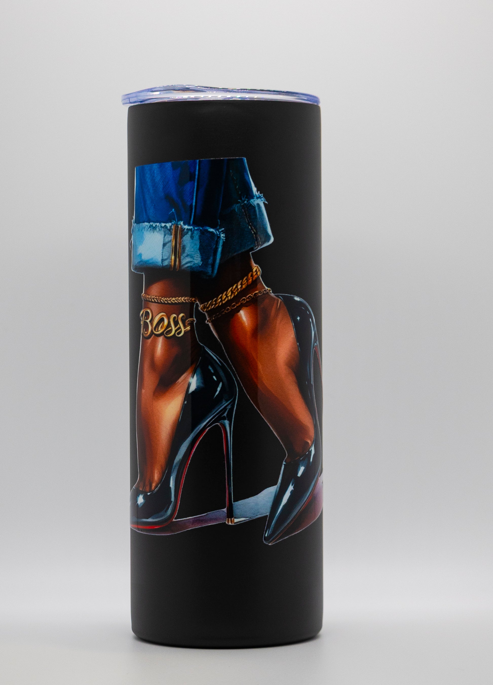 20oz Black stainless steel tumbler with UVDTF sticker (image as shown). Includes stainless steel straw and clear lid.